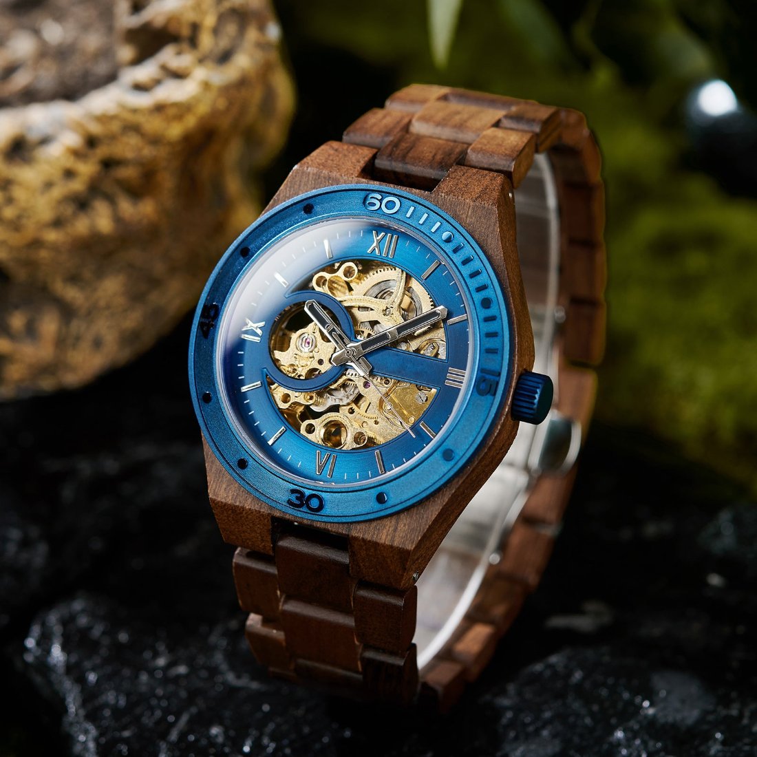 The Classic Mechanic Wood Watch Blue Dial