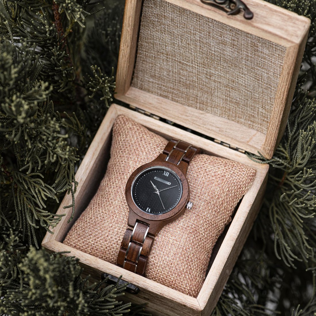 A wood watch is perfect for the discerning individual who values one-of-a-kind pieces. Look stylish with this strapping and natural two-tone wood watch design. It has an adjustable wooden band that showcases its beautiful natural wood grain. The Two Tone also comes with a handmade bamboo cylinder..