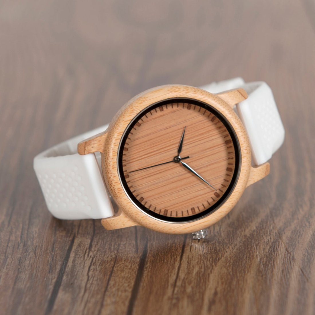 Un reloj de madera es para la persona perspicaz que usa solo piezas únicas. Siéntase casual en este reloj de madera con correa de silicona.