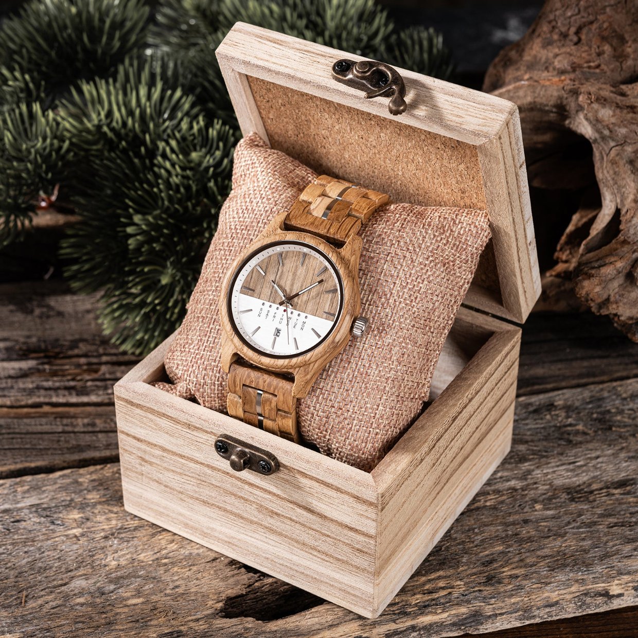 A wood watch is perfect for the discerning individual who values one-of-a-kind pieces. Look stylish while keeping track of your days with this unique and handcrafted wood watch. It has an adjustable wooden band that showcases its beautiful natural wood grain. The Parallel also comes with a handmade bamboo cylinder.