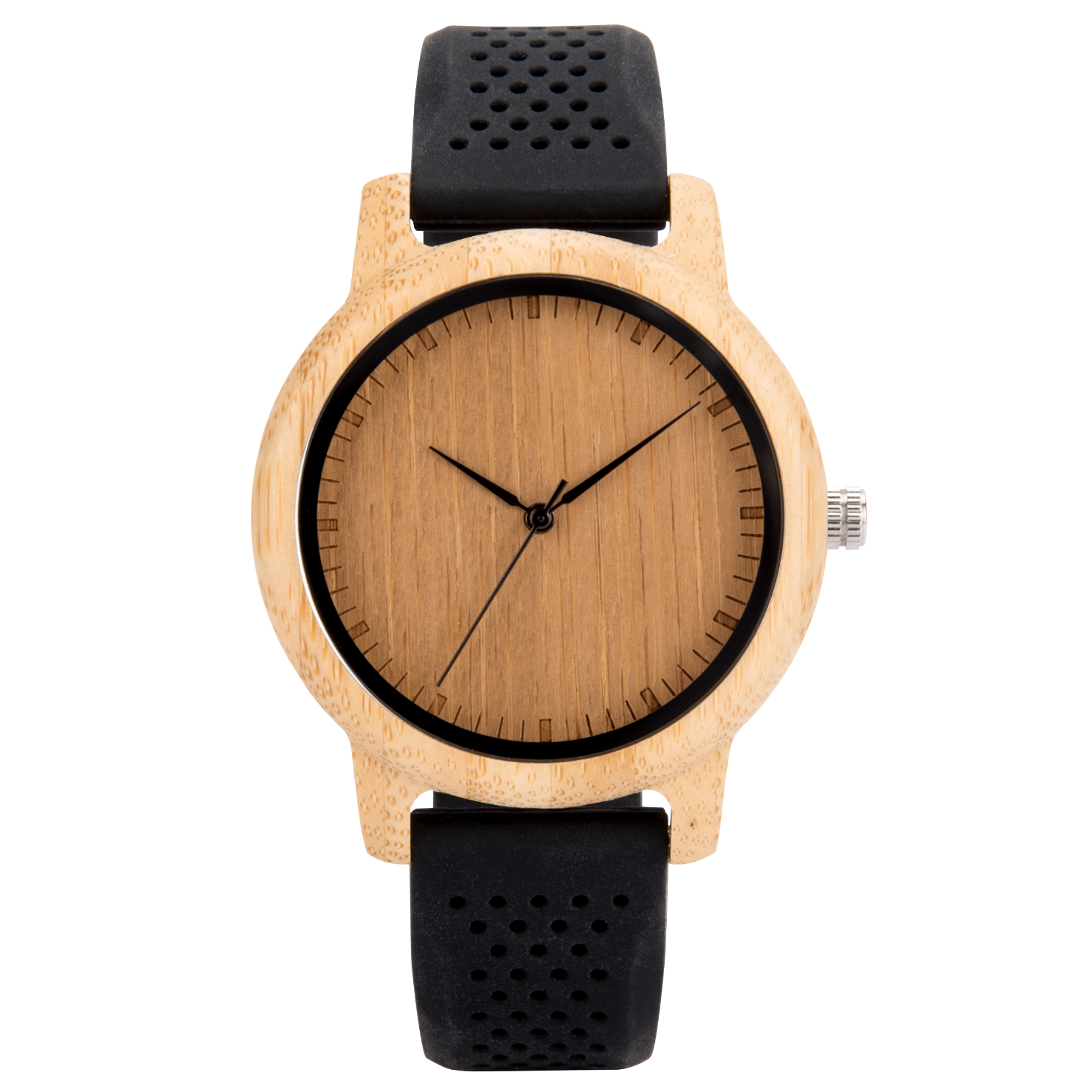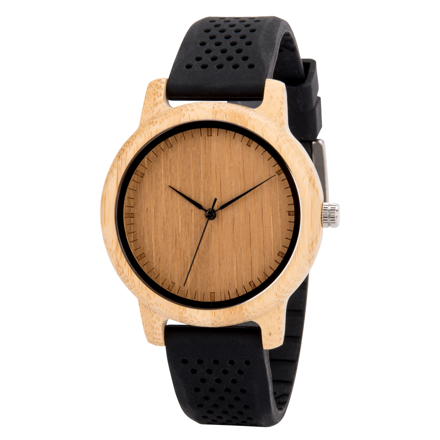 YSM-The Lively Wood Dial Silicone Band Black
