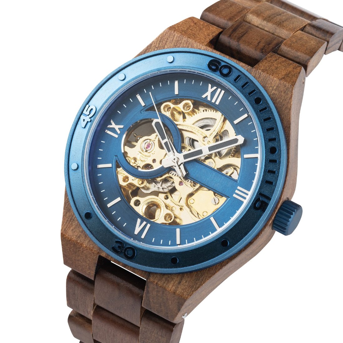 The Classic Mechanic Wood Watch Blue Dial