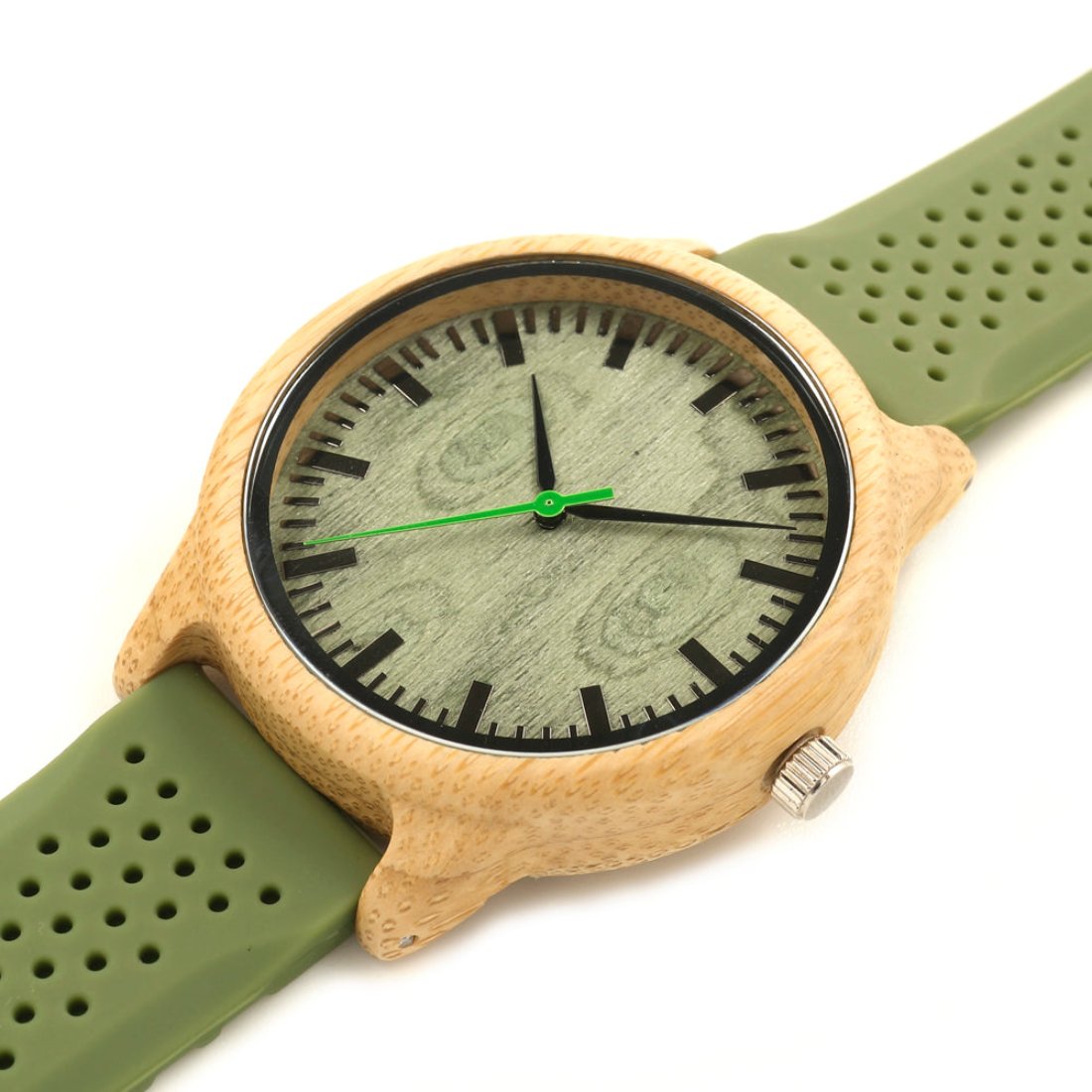 The Lively Wood Dial Silicone Band Green
