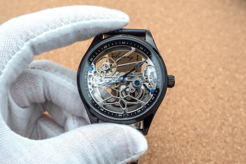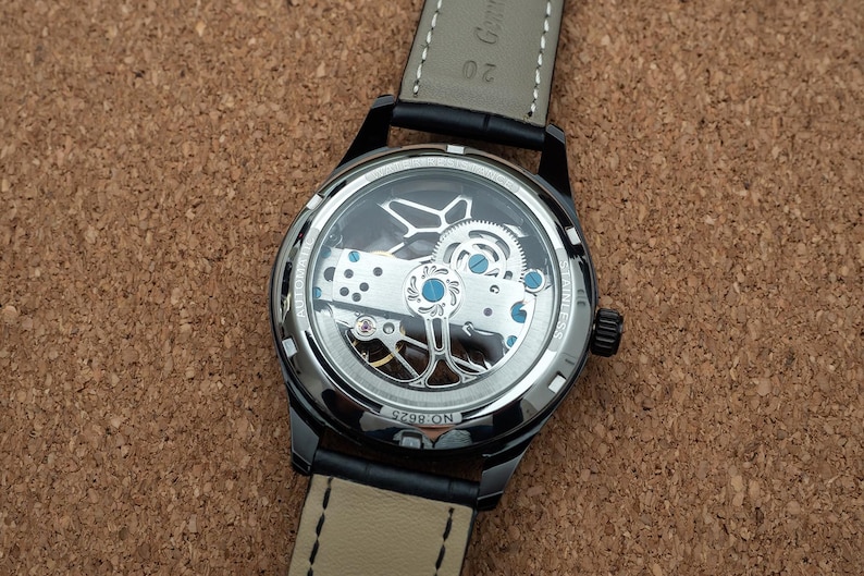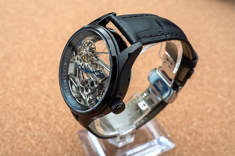 Cool thing about this watch is that you can actually see through front to back, to sides and you can enjoy all the gears move inside the watch.
