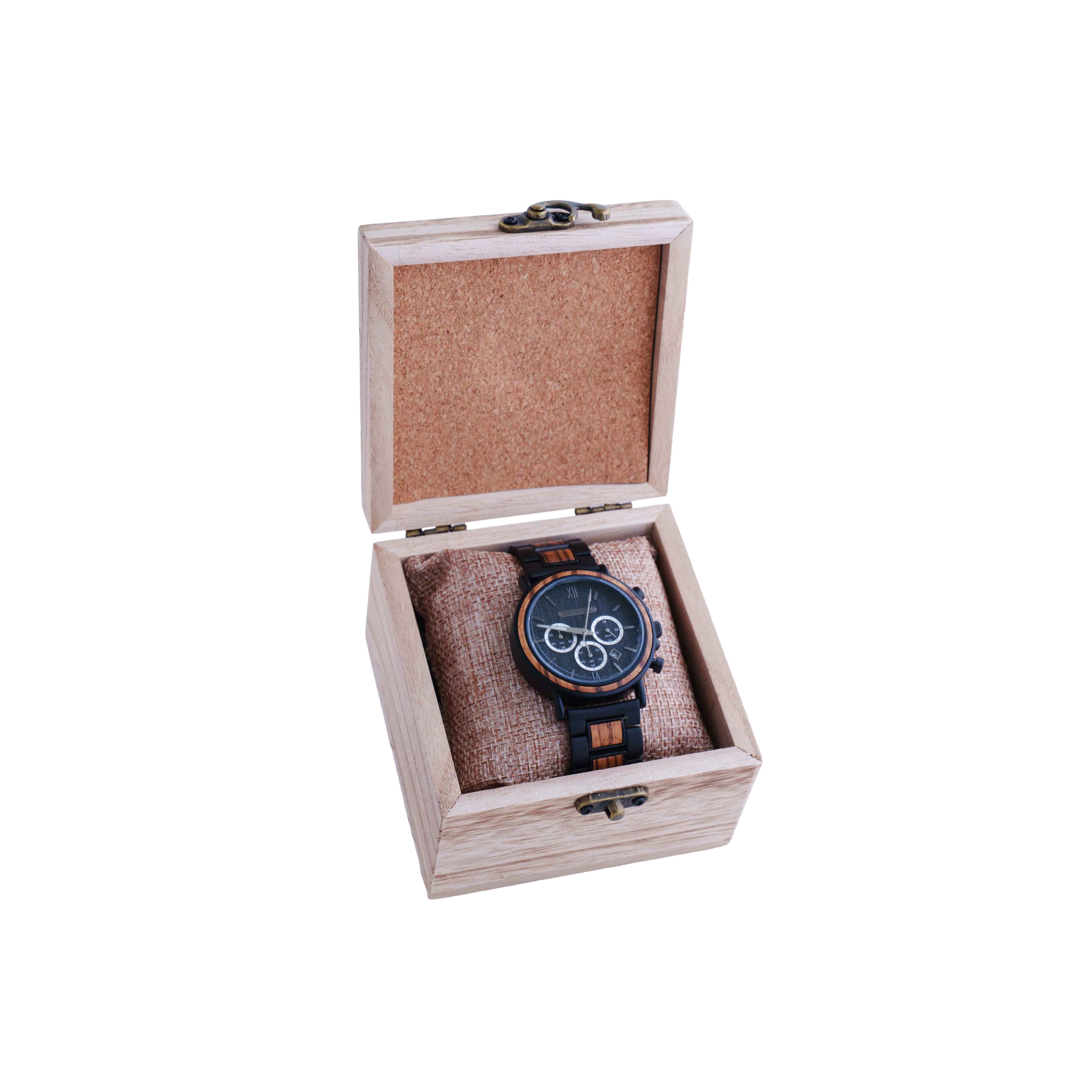 Un reloj de madera es ideal para la persona perspicaz que aprecia piezas únicas. Este reloj sigiloso de metal y madera seguramente llamará la atención y a su vez mantendrá el registro de su tiempo. Tiene una banda ajustable de metal y madera que muestra su hermoso grano de madera natural. El Cronómetro también viene con un cilindro de bambú hecho a mano.