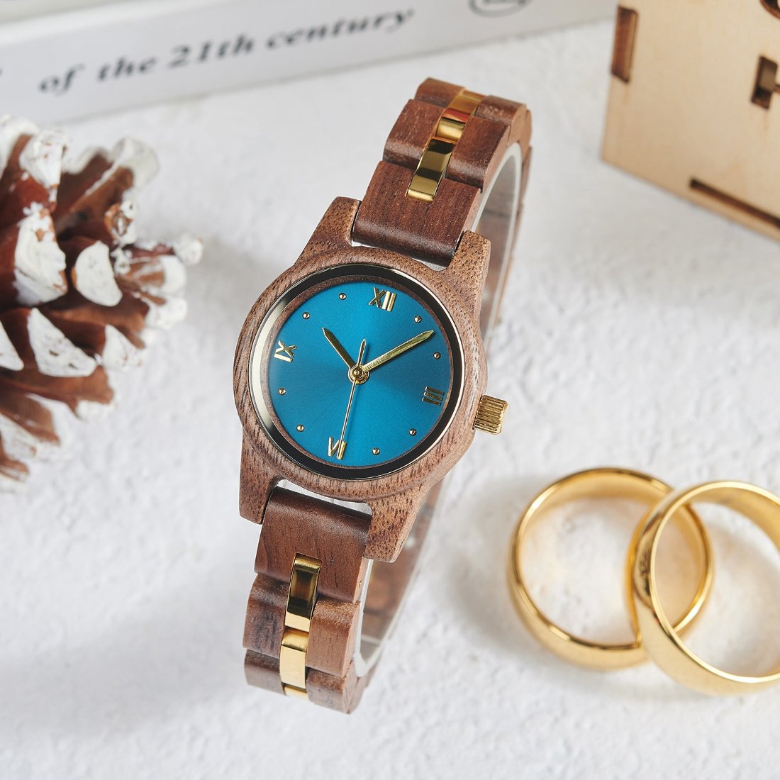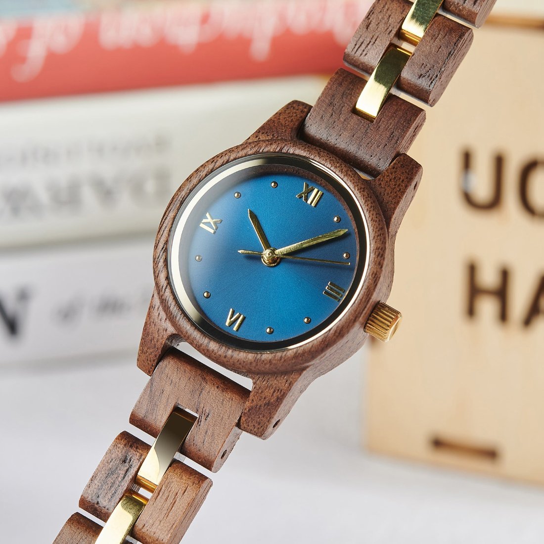 The Classic Women’s Wood Watch Sleek Walnut Blue Dial