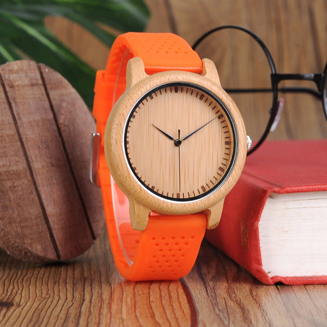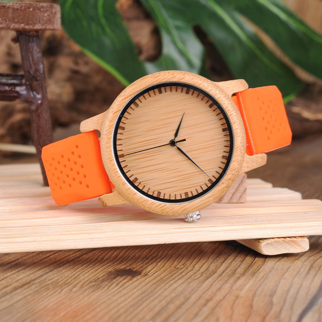 The Lively Wood Dial Silicone Band Orange